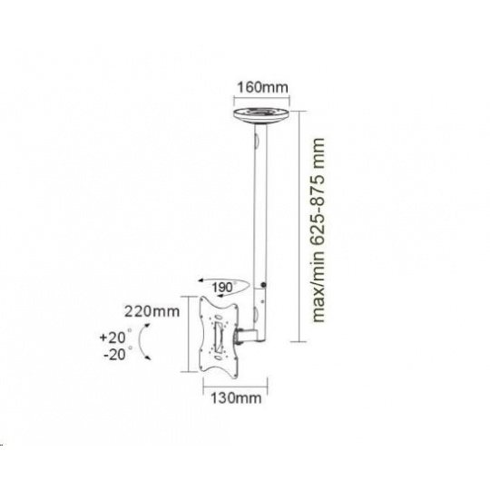 Technické údaje: maximálne zaťaženie 30kg na LCD plazma LED televízory a monitory odporúčaná uhlopriečka obrazovky 22" až 42" VESA štandard 75x75 až 200x200 otočný do strán +90° / -90° náklon obrazovky +20° / -20° nastaviteľná dĺžka držiaku od 625mm do 875mm systém skrytého vedenia káblov kvalitná, bezpečná a pevná konštrukcia farba čierna záruka 2 roky VESA 75x75 VESA 100x100 VESA 200x100 VESA 200x200