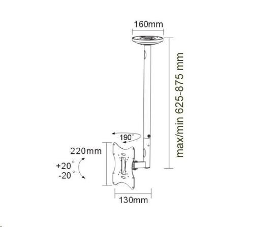 Technické údaje: maximálne zaťaženie 30kg na LCD plazma LED televízory a monitory odporúčaná uhlopriečka obrazovky 22" až 42" VESA štandard 75x75 až 200x200 otočný do strán +90° / -90° náklon obrazovky +20° / -20° nastaviteľná dĺžka držiaku od 625mm do 875mm systém skrytého vedenia káblov kvalitná, bezpečná a pevná konštrukcia farba čierna záruka 2 roky VESA 75x75 VESA 100x100 VESA 200x100 VESA 200x200