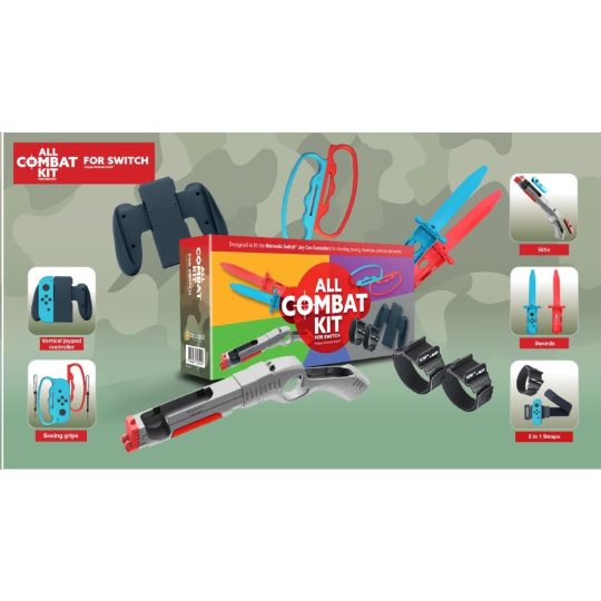 All Combat Kit je druhým v našom novom rade príslušenstva pre Switch a prináša rovnakú zábavu ako All Sports Kit. S našou bojovou súpravou si budete môcť vychutnať rôzne herné žánre, ako sú strieľačky z pohľadu prvej osoby, bojové hry, fitness, športové hry a preteky.