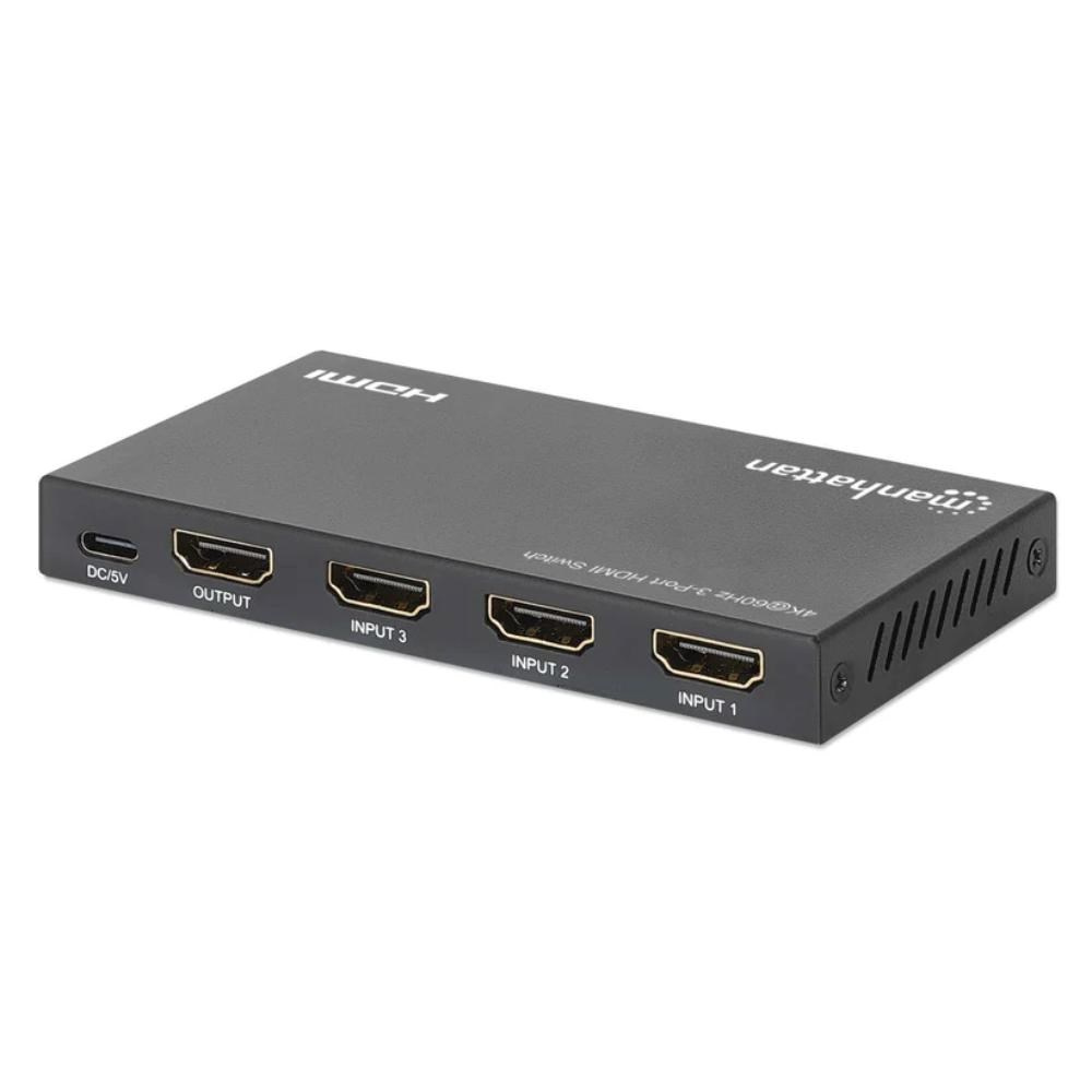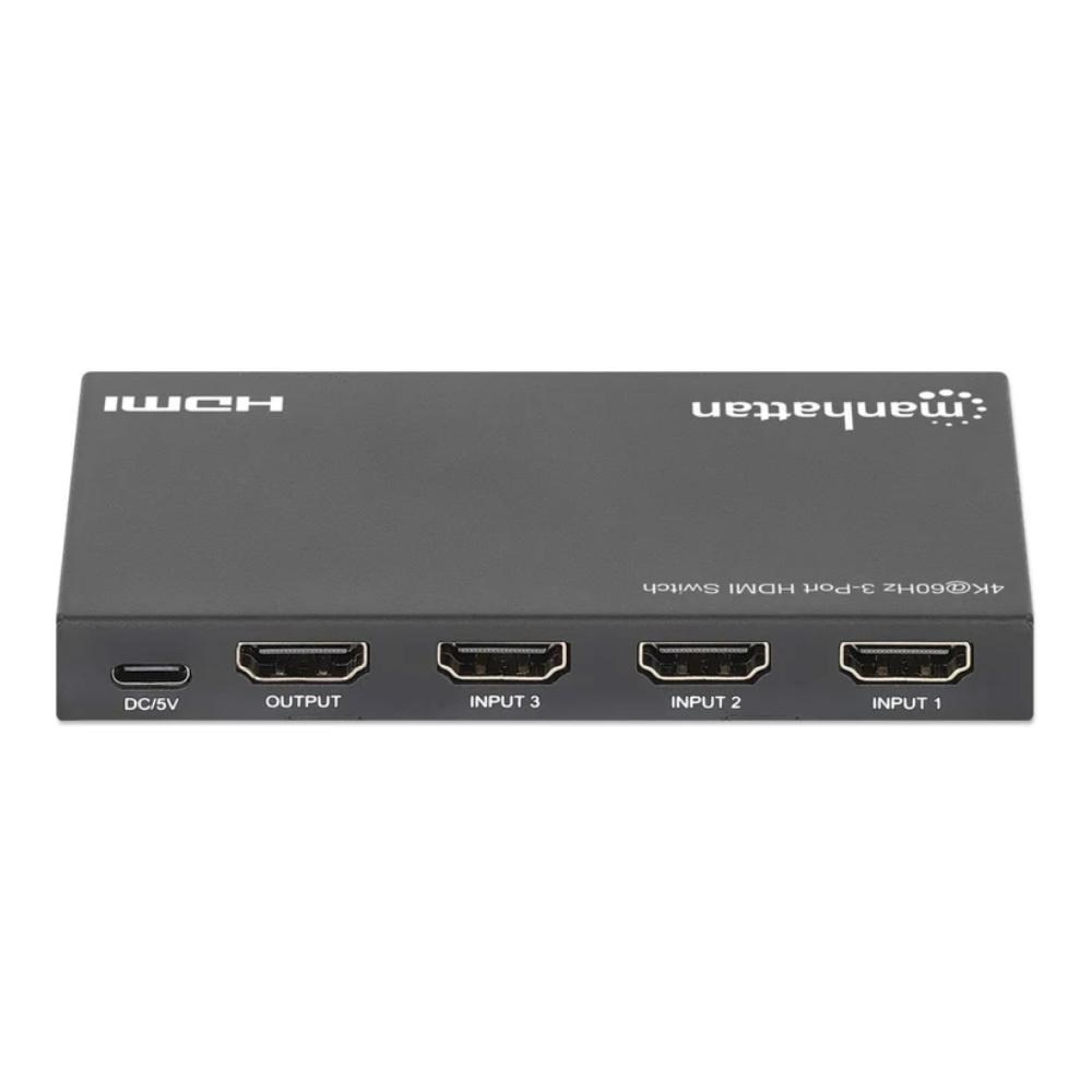 Switches between three HDMI audio/video source signals on a single display Resolutions up to Ultra-High-Definition (UHD) 4K@60Hz (3840×2160) Automatically switches to a newly turned on source, with the option for manual switching via IR remote control or the push of a button on the HDMI switch