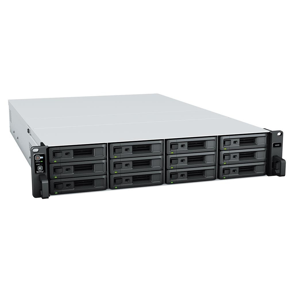 Dvanásťšachtové zariadenie Synology SA6400 je navrhnuté tak, aby umožňovalo rýchlo navyšovať objemy dát. Táto jednotka dokáže po rozšírení podporovať až 108 diskov a je teda ideálna pre podnikového dátového centra, veľké produkčné štúdiá a rastúce firmy v oblasti maloobchodu a pohostinstva, ktoré využívajú projekty s veľkými objemami dát a potrebujú si neustále ponechávať priestor na ďalšie rozširovanie.