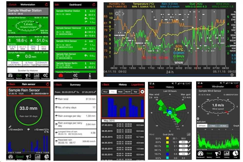 Meteorologická súprava umožňuje merať teplotu, relatívnu vlhkosť, zrážky a rýchlosť a smer vetra pomocou bezdrôtových senzorov a prenášať namerané údaje cez bránu a cez smerovač na internet. Na svojom mobilnom zariadení so systémom iOS 7 a novším alebo Android 3.2 a novším môžete na sledovanie nameraných údajov použiť aplikáciu MOBILE-ALERTS. Je možné pridať aj ďalšie bezdrôtové senzory, kde maximálny počet senzorov, ktoré je možné do brány zaznamenať, je 50.