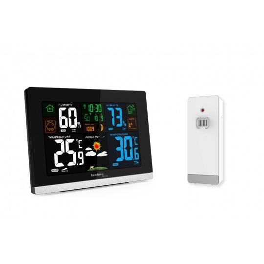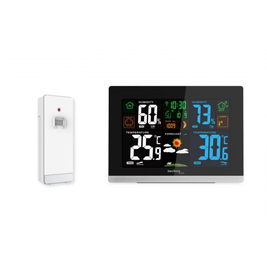 - farby displeja: čas, dátum zelená, barometrický tlak oranžová, vnútorná teplota a relatívna vlhkosť biela, vonkajšia teplota a relatívna vlhkosť modrá