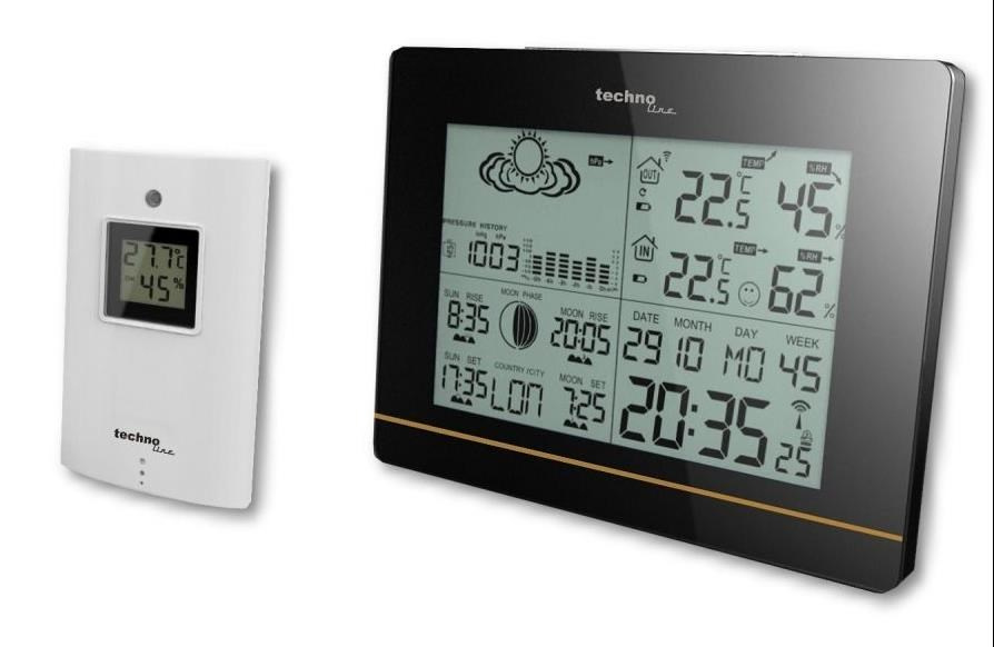 - veľkosť číslic na displeji – čas 16 mm, dátum 8 mm, vnútorná teplota a vlhkosť 11 mm, vonkajšia teplota a vlhkosť 12 mm, barometrický tlak 7