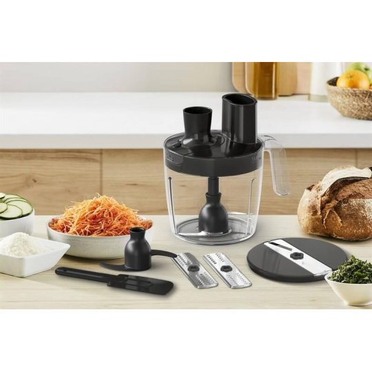 Tefal HB67G830 Quickchef+ 5v1 Black vám poskytne viac nástrojov na uľahčenie práce v kuchyni. Kompaktný sekáčik slúži na sekanie a mletie. So šľahacou metlou zase pripravíte lahodné krémy či domáce majonézu. Mixovať môžete pomocou Tefal HB67G830 v dodávané odmernej nádobe.