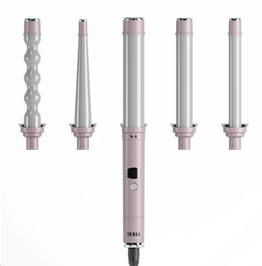 Kulma na vlasy Tesla ponúka päť vymeniteľných nástavcov rôznych veľkostí, vďaka ktorým je univerzálnym stylingovým nástrojom vhodným na tvorbu rôznych typov vĺn.