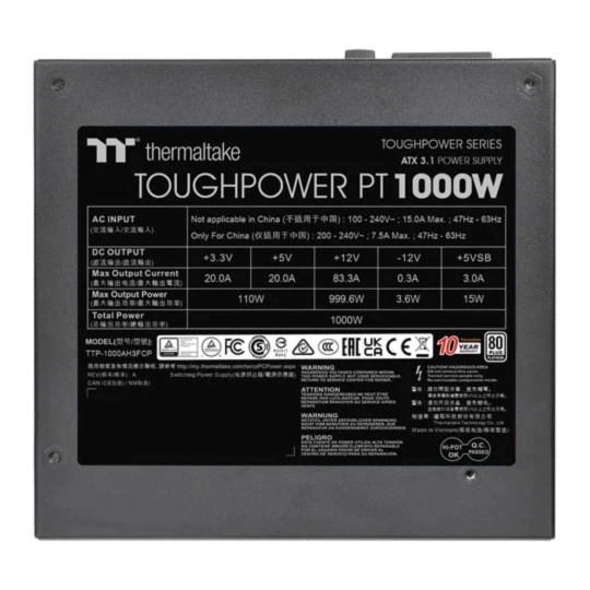 THERMAL TAKE zdroj 1000W Toughpower PT, 120mm, Plně modulární, 80+ Platinum, černá