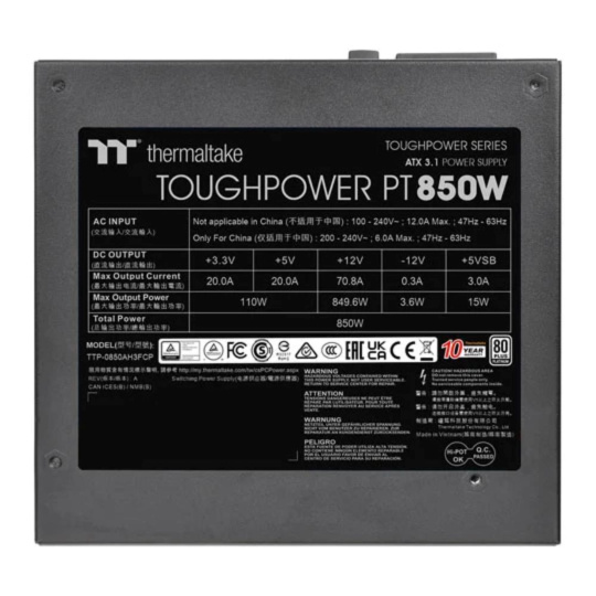 THERMAL TAKE zdroj 850W Toughpower PT, 120mm, Plně modulární, 80+ Platinum, černá