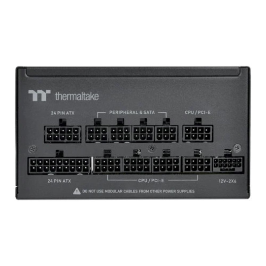 Formát zdroja:ATX; Konektory:8pin CPU 1x, 8pin CPU 2x, PCIe 6-pin, PCIe 8-pin, PCIe 16-pin Gen5, SATA 15-pin, Molex; Konektory pre základnú dosku:ATX 24-pin, EPS 8-pin; Vlastnosti zdroja:Modulárna kabeláž.
