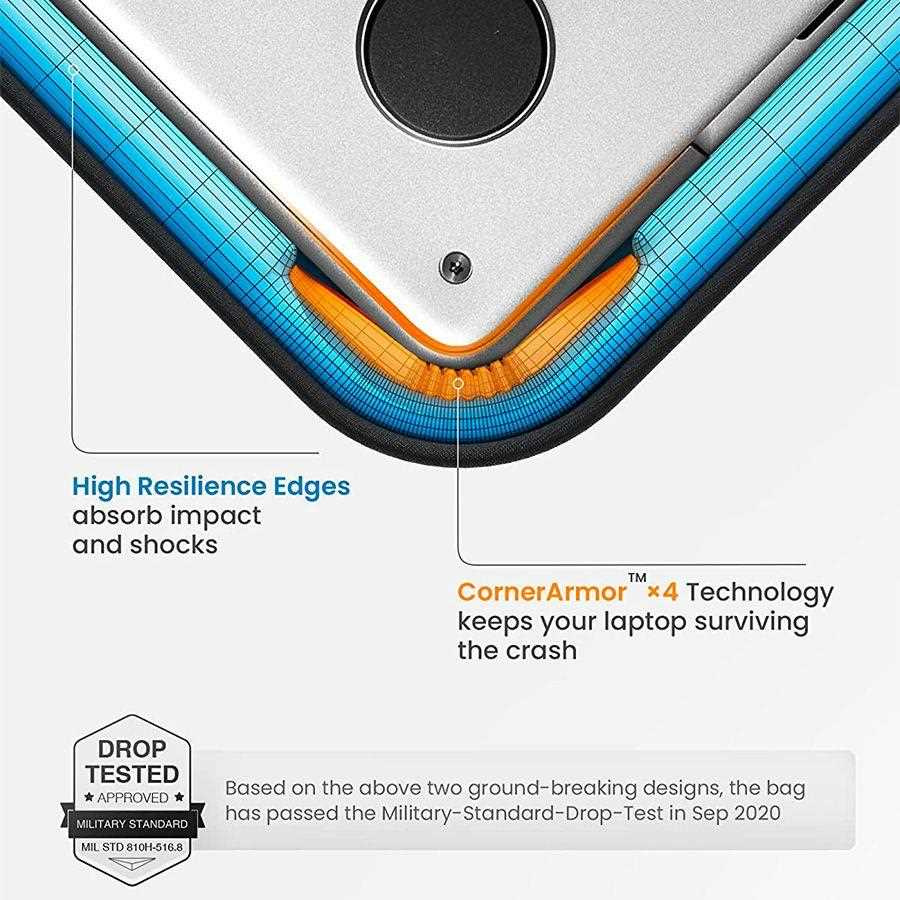 Ako čo najlepšie ochrániť svoj milovaný Mac proti poškriabaniu a poškodeniu pri pádoch? Tento úlohu s pokojom zverte novému púzdru tomtoc. Jeho rohy a hrany sú vyztužené originálnou technológiou CornerArmor. Tá spĺňa vojenský štandard pre pádové skúšky. Nejde ale len o ochranu najzraniteľnejších častí zariadenia. Uvnútri púzdra nájdete veľmi mäkkú plyšovú podšívku a polstrovanie, s ktorým bude notebook doslova ako v bavlne. Poškriabaniu šasi zipom zabránime ochranným hrebeňom po celom jeho obvode - jeden z mnohých malých detailov, ktoré znamenajú obrovský rozdiel.Zip YKK a inovatívne recyklované tkaniny