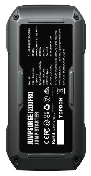 Maximálne spoľahlivý a výkonný štartér na auto JumpSurge 1200 PRO s kapacitou 3,7V, 10000mAh (37Wh) a špičkovým štartovacím prúdom až 1800A je ideálne zariadenie, ktoré vám poslúži ako štartovací zdroj pre vaše vozidlá, lode, motocykle, skútre. JumpSurge 1200 PRO vám umožní oživiť batériu a nikdy nezostal na cestách bez pomoci!