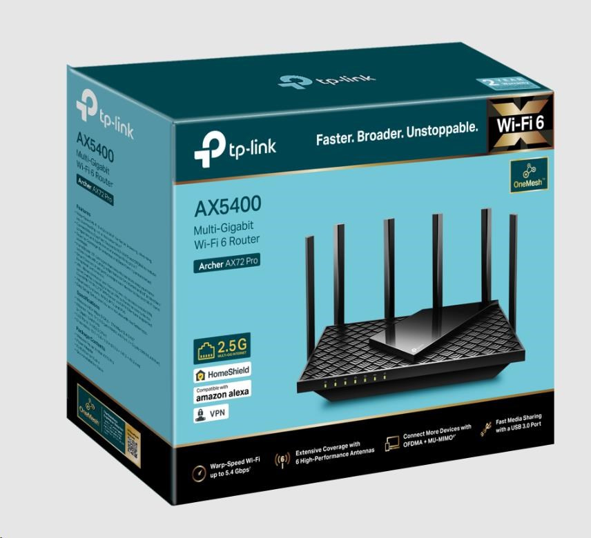 TP-Link Archer AX72 Pro OneMesh/EasyMesh WiFi6 router (AX5400,2,4GHz/5GHz,4xGbELAN,1x2,5GbELAN/WAN,1xUSB3.0)