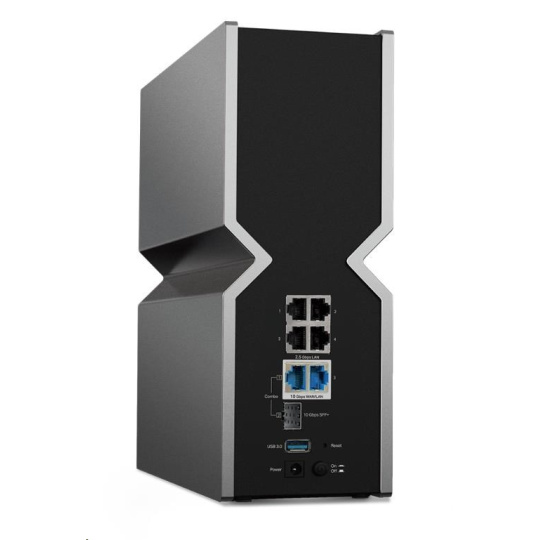 - Dva 10G porty: 1× 10 Gb/s kombinovaný ethernetový/optický port WAN/LAN + 1× 10 Gb/s WAN/LAN port + 4× 2.5 Gb/s porty + 1× USB 3.0 port zaisťujú maximálnu flexibilitu a zvýšenú prepustnosť.§