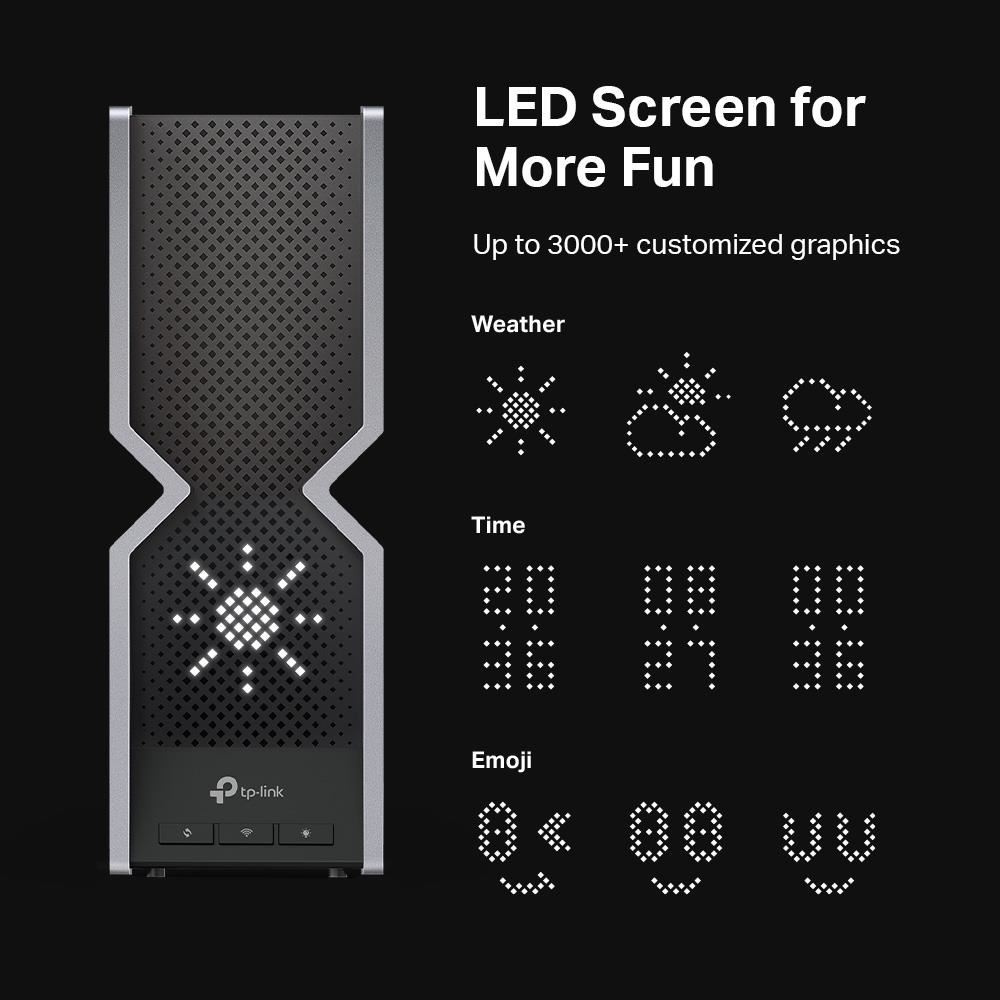 - Jednoduché a zábavné používanie: Všetky nastavenia môžete pohodlne spravovať pomocou aplikácie Tether a na LED displeji si prehliadať čas, počasie a ďalšie informácie v príťažlivom grafickom štýle.