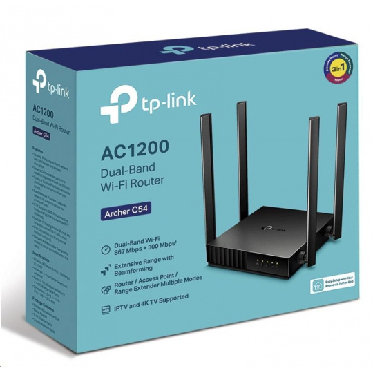 TP-Link Archer C54 WiFi5 router (AC1200, 2,4GHz/5GHz, 4x100Mb/s LAN, 1x100Mb/s WAN)