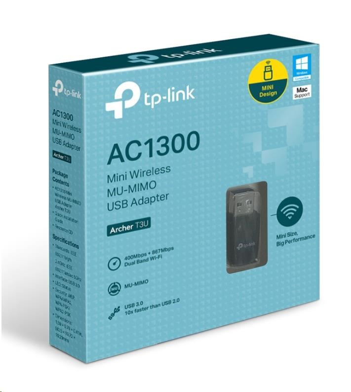| Balenie obsahuje | AC1300 Mini Wireless MU-MIMO USB Adaptér Archer T3U Rýchly sprievodca inštaláciou Zdrojové CD |