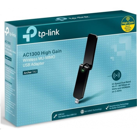 | Package Contents | AC1300 High Gain Wireless MU-MIMO USB Adaptér Archer T4U Rýchly návod na inštaláciu Zdroje softvéru |