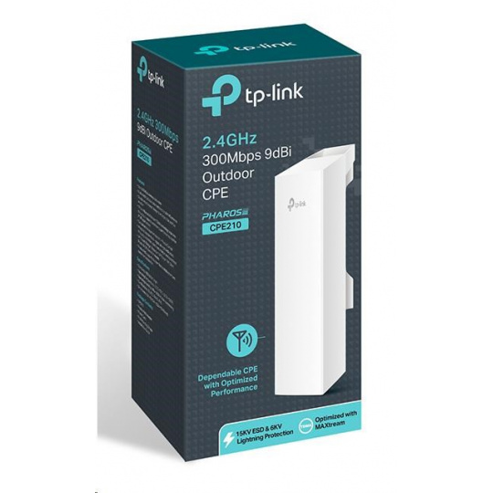 TP-Link CPE210 venkovní CPE (2,4GHz, 300Mb/s, 9dBi, 2x100Mb/s, 1xPoE)