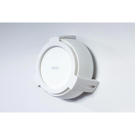 Plastový držiak na stenu a strop pre TP-Link DECO BE25 . Držiak je vyrobený z PETG materiálu na 3D tlačiarni a má bielu farbu.