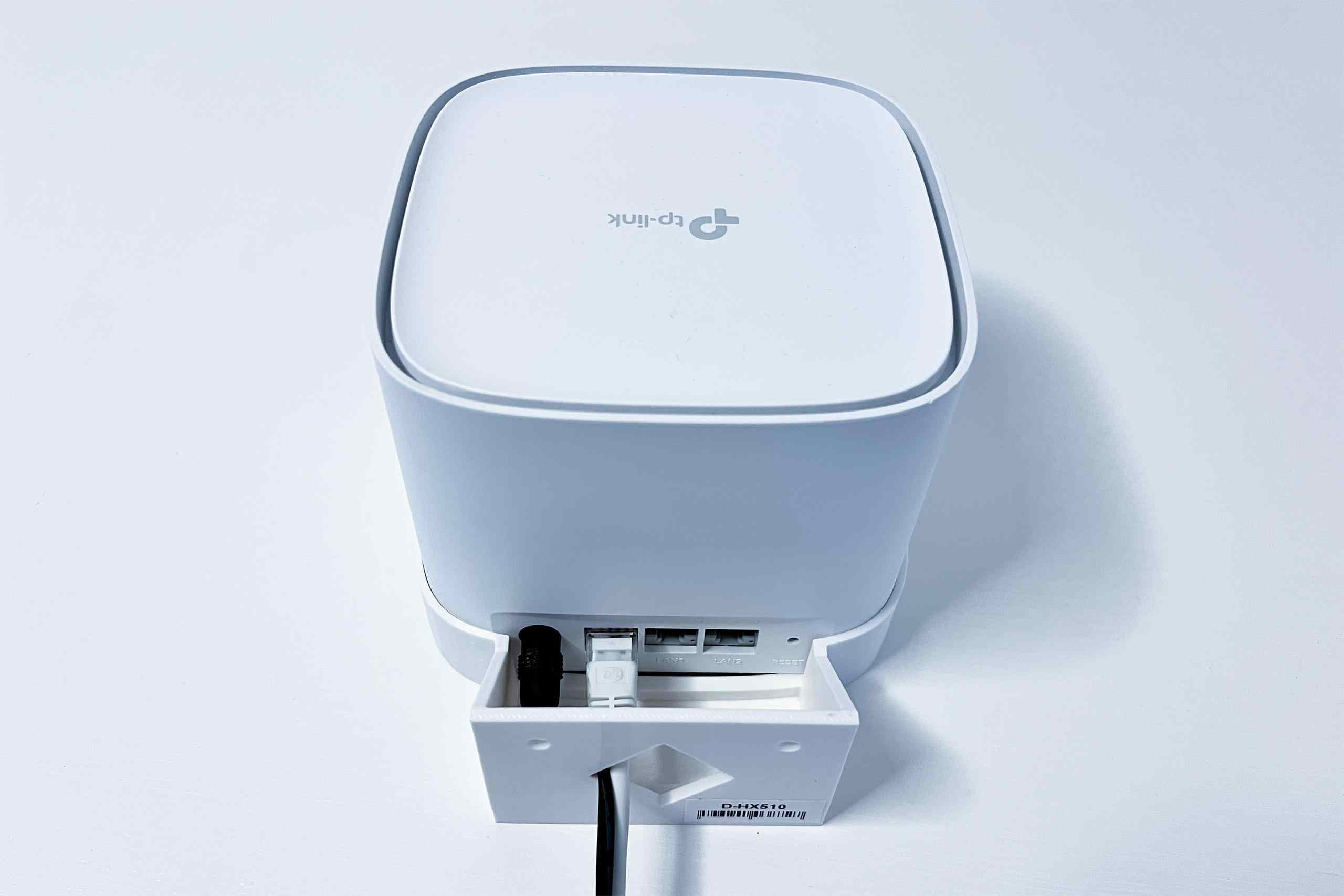 plastový držiak na stenu pre TP-Link DHX510, HX520 na stenu a to pomocou dvoch skrutiek. Držiak je vyrobený z PETG materiálu na 3D tlačiarni a má bielu farbu.