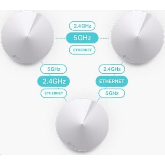 | WiFi Dosah | 3-5 izbové domy (3-balíček) TP-Link Mesh technológia Voliteľná Ethernetová spätná väzba spolupracuje na prepojení jednotiek Deco pre plynulé pokrytie 4× Antény (interné) Viaceré antény tvorí poľnopločný zosilňovač signálu na pokrytie väčších smerov a veľkých plôch Beamforming Sústreďuje bezdrôtovú signálovú silu smerom k klientom, čím rozširuje WiFi dosah |