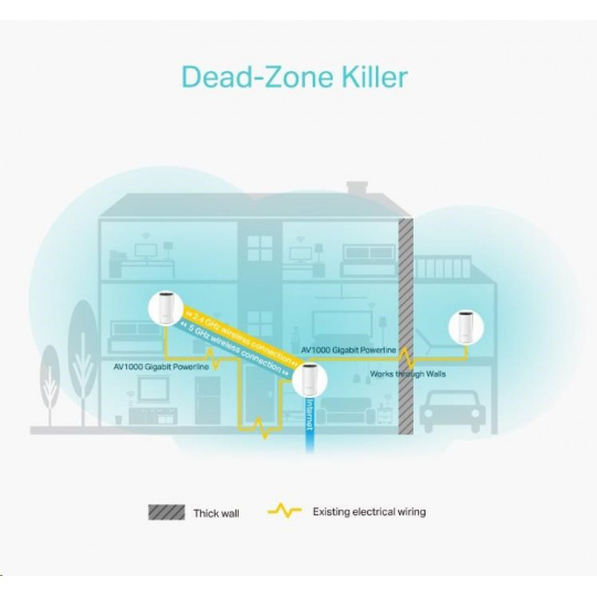 Deco P9 kombinuje duálne Wi-Fi a powerline pre vytvorenie silnejšej mesh siete. Technológia Powerline využíva elektrické rozvody vášho domu na vytvorenie silnejšieho prepojenia medzi jednotkami Deco tým, že znižuje dopad stien a iných prekážok na signál a poskytuje ešte vyššie rýchlosti siete a naozaj bezproblémové pokrytie .