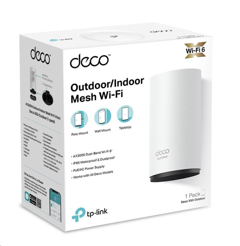 TP-Link Deco X50-Outdoor (1-pack) WiFi6 Mesh (AX3000,2,4GHz/5GHz,2xGbELAN/WAN)