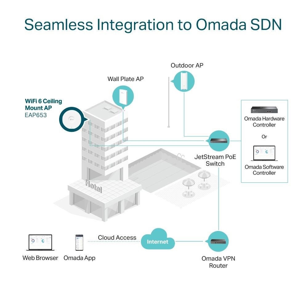 - Centralizovaná cloudová správa - vďaka integrácii do platformy Omada SDN môžete celú sieť spravovať lokálne alebo cez cloud prostredníctvom webového rozhrania alebo aplikácie Omada.