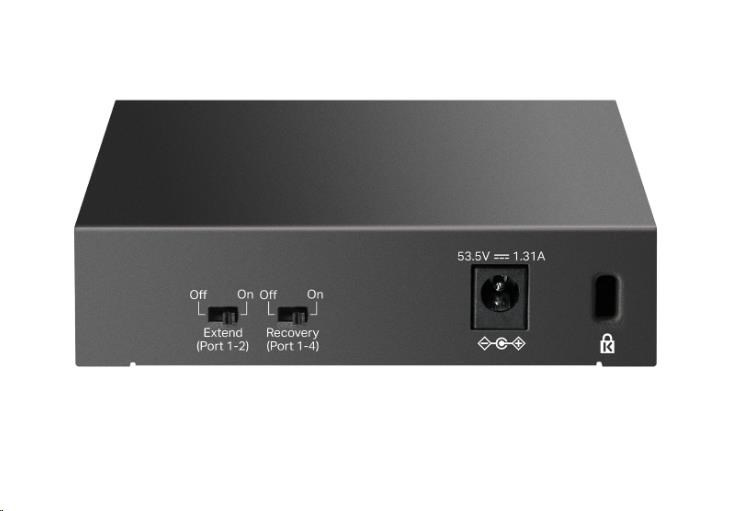 - Prenos PoE až na 250 m: Vďaka režimu Extend dosahuje prenosová vzdialenosť PoE až 250 m, čo je ideálne pre nasadenie kamerových systémov vo veľkých oblastiach.