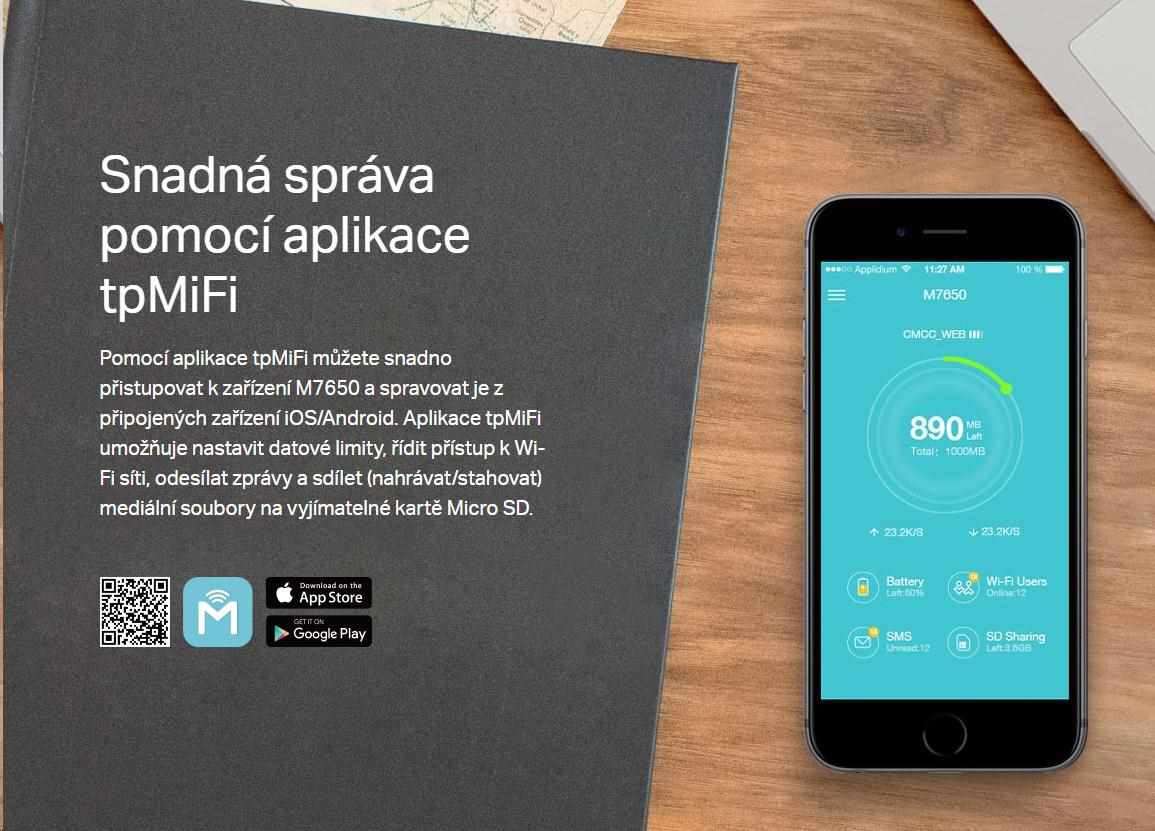 - Jednoduché ovládanie pomocou aplikácie tpMiFi