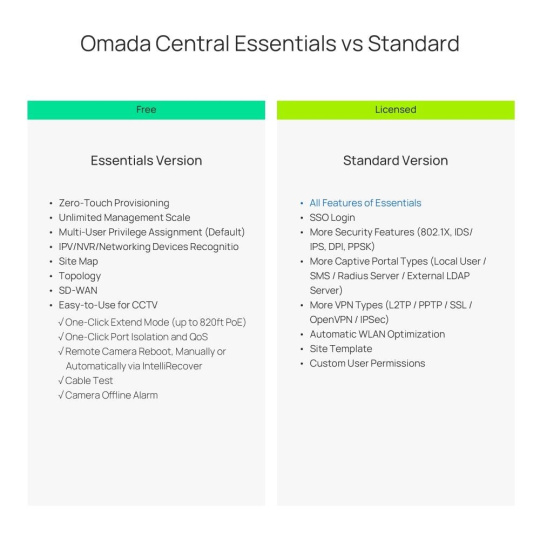 | Centralized Management | • Neobmedzená škála centralizovanej správy • Centrálne spravovanie prístupových bodov Omada, JetStream switchov a SafeStream routerov |