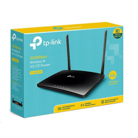 | Package Contents | 300Mbps Wireless N 4G LTE Router TL-MR6400 Power Adapter RJ45 Ethernetkábel Rýchly inštalačný sprievodca |