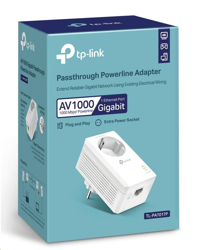 TP-Link TL-PA7017P průchozí powerline adaptér (AV1000,1xGbE, HomePlug AV2)