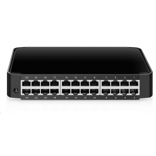 • 24 portov 10/100 Mbit/s RJ45 s podporou automatického vyjednávania a Auto MDI/MDIX