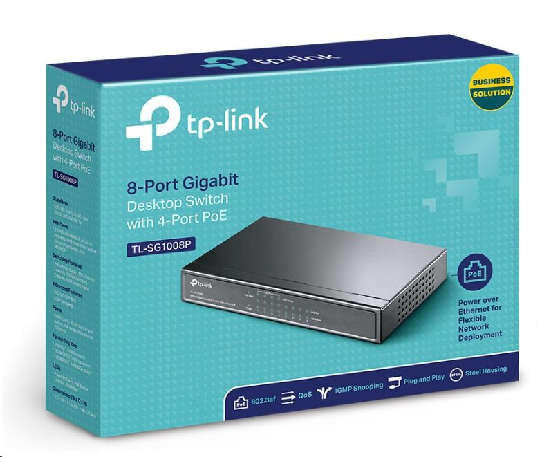 TP-Link switch TL-SG1008P (8xGbE, 4xPoE+, 64W, fanless)