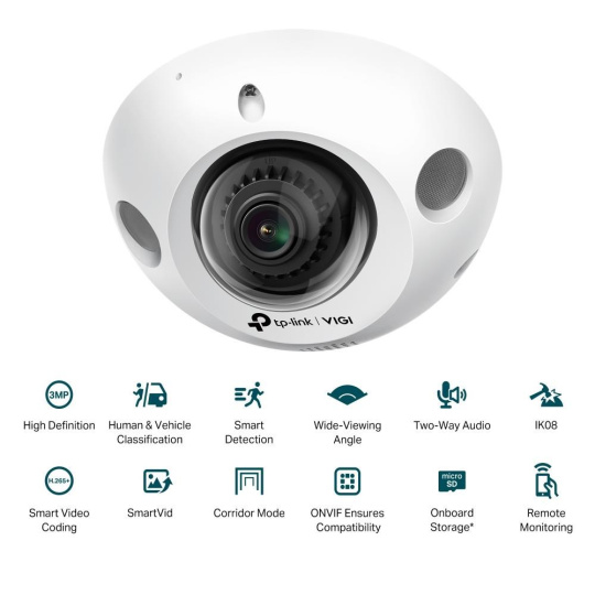 - Veľmi vysoké rozlíšenie 3 MPx: Kamera VIGI C230I Mini má rozlíšenie 3 MPx – viac než dostatok pixelov na zachytenie niektorých diskrétnejších detailov.