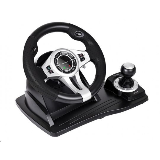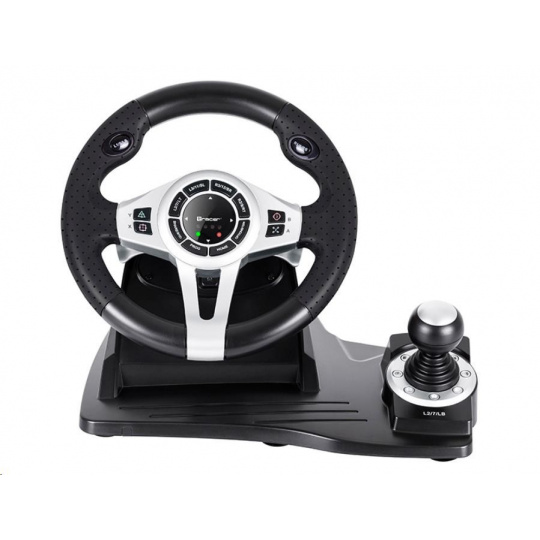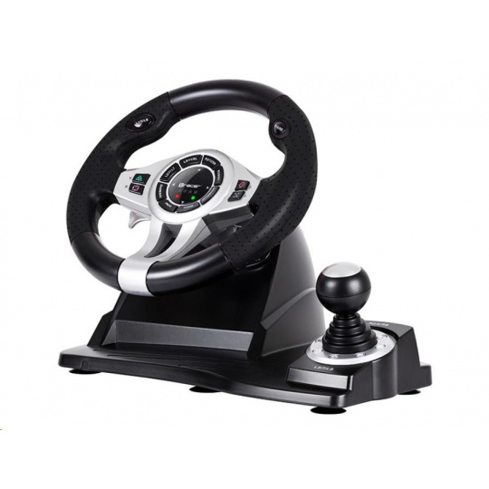 Automobilové preteky sú vaším živlom? Nástupte do preteku s volantom TRACER Roadster a nechajte svojich protivníkov za sebou. Vysoko kvalitné volantom TRACER Roadster je kompatibilné ako s konzolami PS3 / PS4 / Xbox One, tak s PC. Volant pracuje veľmi ticho a plynulo. Prevodovka a samostatný modul s brzdovými a plynovými pedálmi oživí vaše riadiace centrum, čo umožňuje rýchlu reakciu, zrýchlenie aj pohodlné brzdenie a radenie. Vaša jazda bude rovnako dynamická, ako by ste sedeli za volantom skutočného závodného vozidla. Uhol otáčania 270 stupňov vám umožní plne sa dostať do preteku. Zariadenie je možné pripevniť k zemi pomocou prísaviek, čo zaisťuje stabilitu volantu aj pri tých najdivokejších pretekoch. Špičkové materiály herného volantu Roadster z neho robia spoľahlivé a veľmi odolné zariadenie. Tlačidlá zodpovedné za manévre a 8-pásmový analógový D-pad boli zabudované do volantu, aby umožňovali rýchly a pohodlný prístup. Užívajte si realistický herný zážitok a pohodlie pretekárskeho kola. Volant potiahnutý perforovanou gumou zabraňuje pohybu zariadenia v rukách, keď sa rútime dráhou. Štyri LED indikátory na volante pomáhajú udržať kontrolu nad zrýchlením, bez toho aby ste museli spúšťať oči zo stopy.