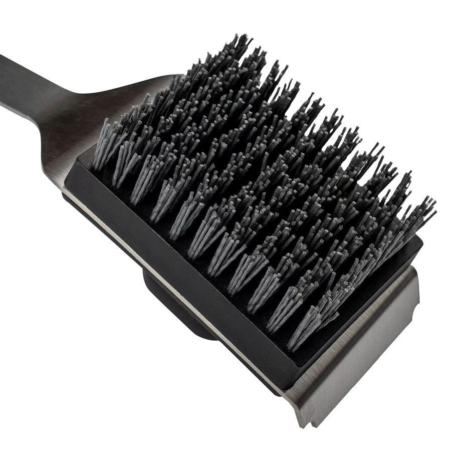 Predstavujeme bezpečnejší spôsob čistenia vychladených roštov grilu. Naše čistiace kefy Traeger BBQ majú nylonové štetiny, ktoré nepoškodia rošty ani sa nedostanú do hamburgerov.
