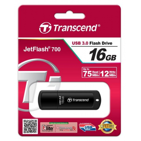 TRANSCEND Flash disk 16GB JetFlash®700, USB 3.0 (R:75/W:12 MB/s) čierna