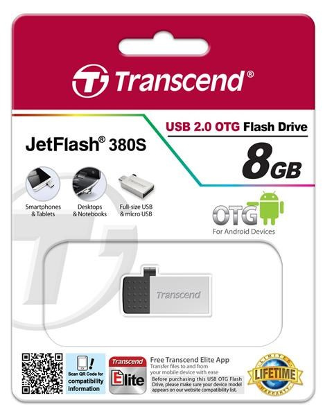 TRANSCEND Flash disk 8GB JetFlash®380S, USB 2.0/micro USB (R:20/W:5 MB/s) strieborná
