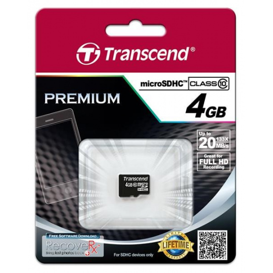 Karta TRANSCEND MicroSDHC 4 GB triedy 10, bez adaptéra