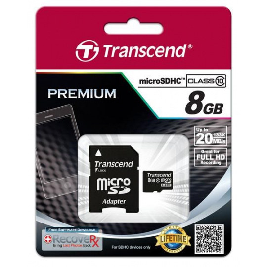 Karta TRANSCEND MicroSDHC 8 GB triedy 10 + adaptér