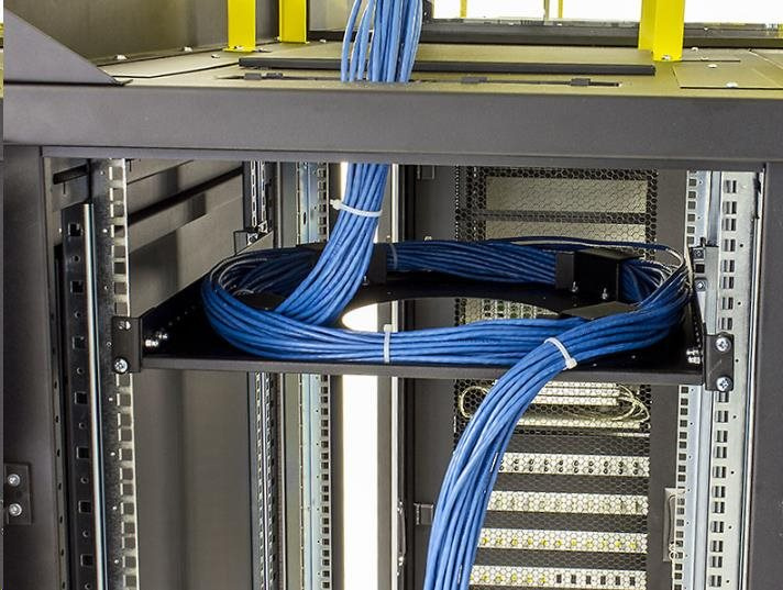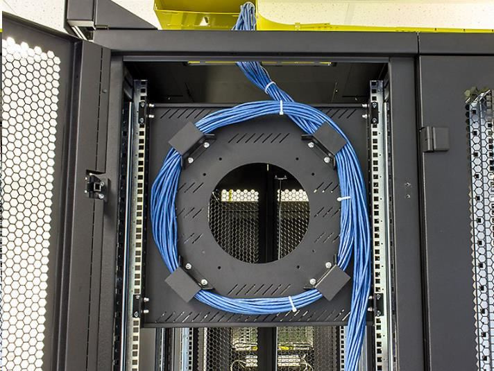 držiak je možné inštalovať vertikálne (10U) na 19" vertikálne lišty (zvyčajne na zadnej strane racku) alebo otočením držiakov horizontálne medzi vertikály ako klasickú policu. Podporné hroty namontované okolo centrálneho otvoru zabezpečujú polomer ohybu uložených káblov a zabraňujú ich poškodeniu.