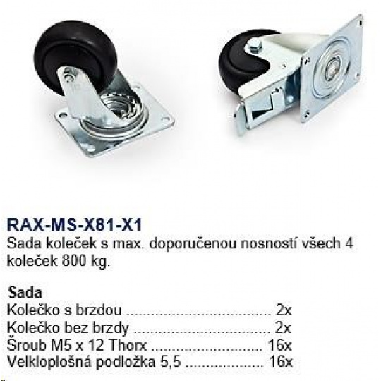 TRITON Sada 4 koliesok (2ks s brzdou, 2ks bez brzdy) max.nosnosť 800 kg