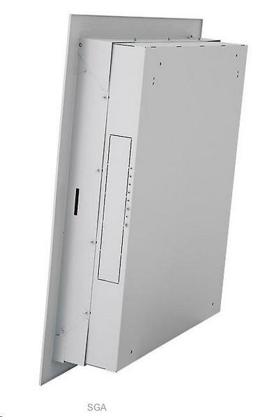 Hybridný rozvádzač SHA - IP20, nosnosť 30 kg. Rozvádzač je určený na zapustenú montáž (model SGA) JEDNODUCHÁ INŠTALÁCIA Horná polovica skrine je vybavená posuvnými držiakmi na montáž 19" patch panelov alebo vane s ističom. MONTÁŽ VODIČOV Na bočných stranách v dolnej polovici skrine sú držiaky pre 19" zariadenia. BREAK-outs v strope a na dne skrine sú pripravené káblové vstupy zakryté break-outs...