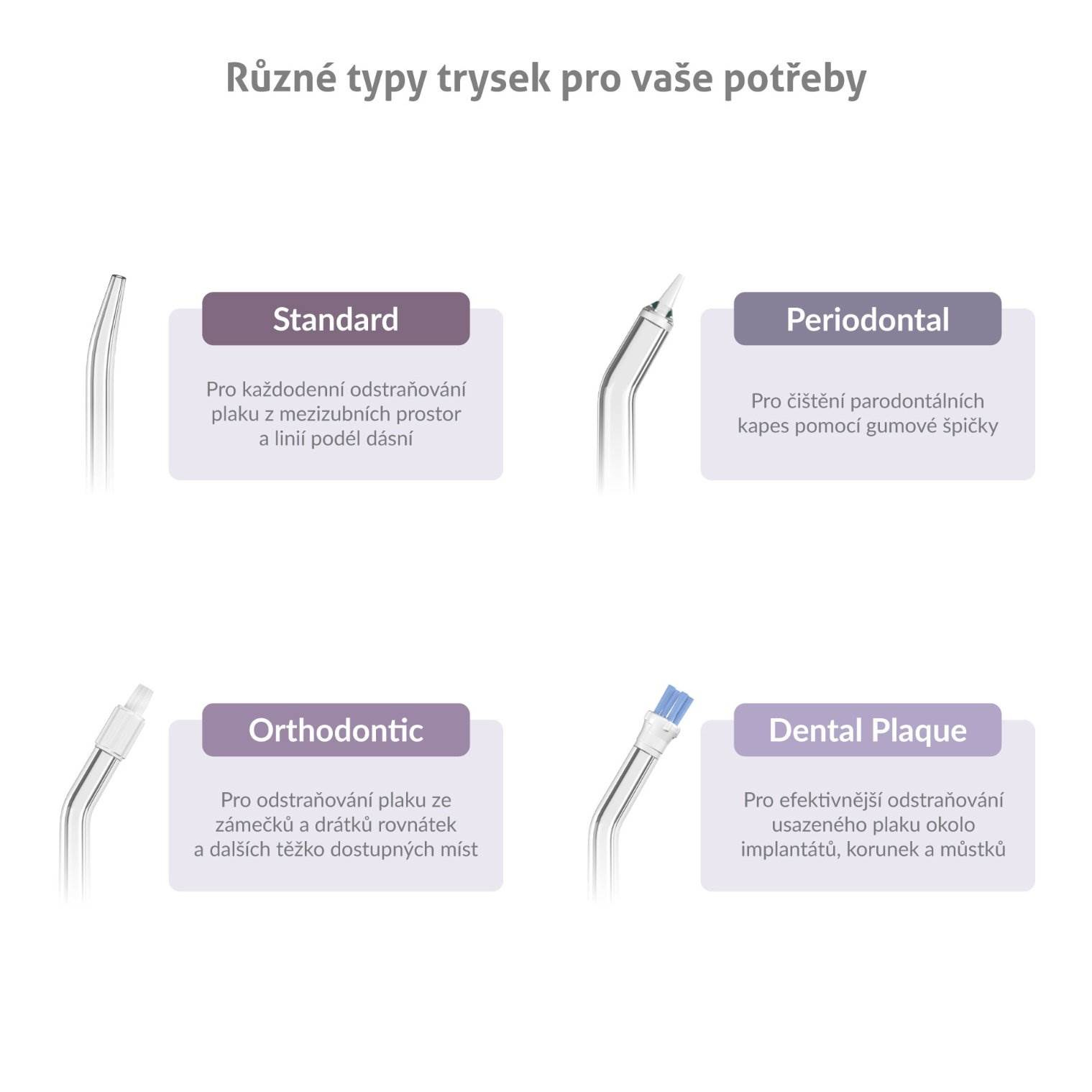 - Periodontal – PParodontálna tryska pre čistenie parodontálnych kapsí pomocou gumovej špičky