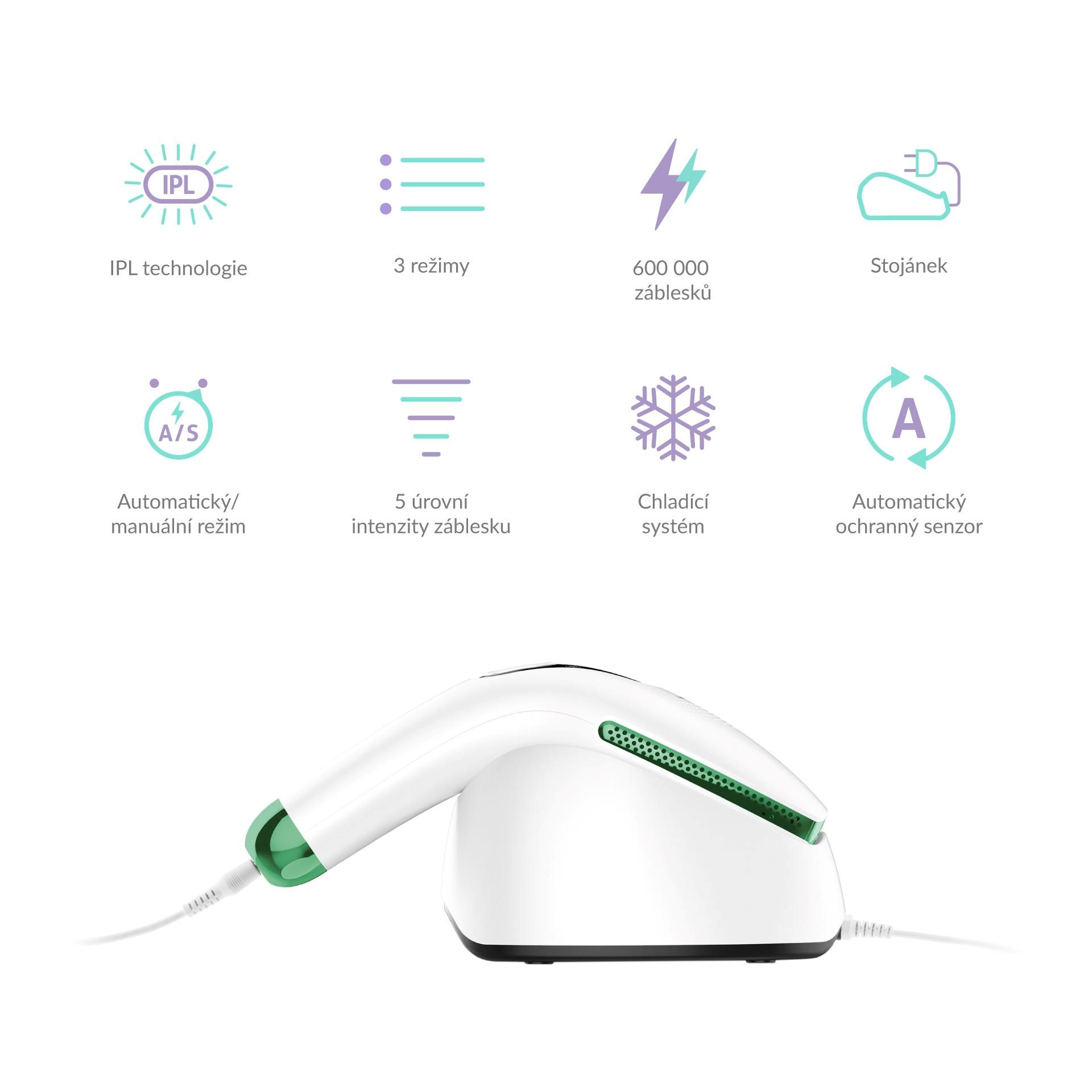 Podľa potreby si môžete zvoliť medzi dvomi režimami. Pri automatickom režime vychádza záblesk každú sekundu. Manuálny režim využijete na tvár a na ťažko dostupné miesta.