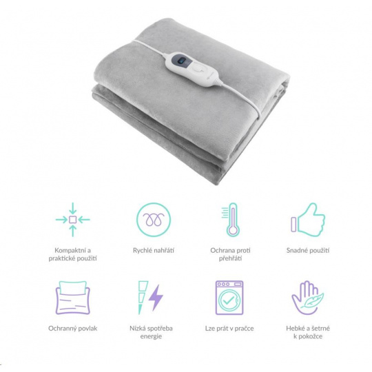S pomocou funkcie rýchleho a rovnomerného nahriatia sa prikrývka začne nahrievať okamžite. Na požadovanú teplotu je zahrievaná do pár minút.