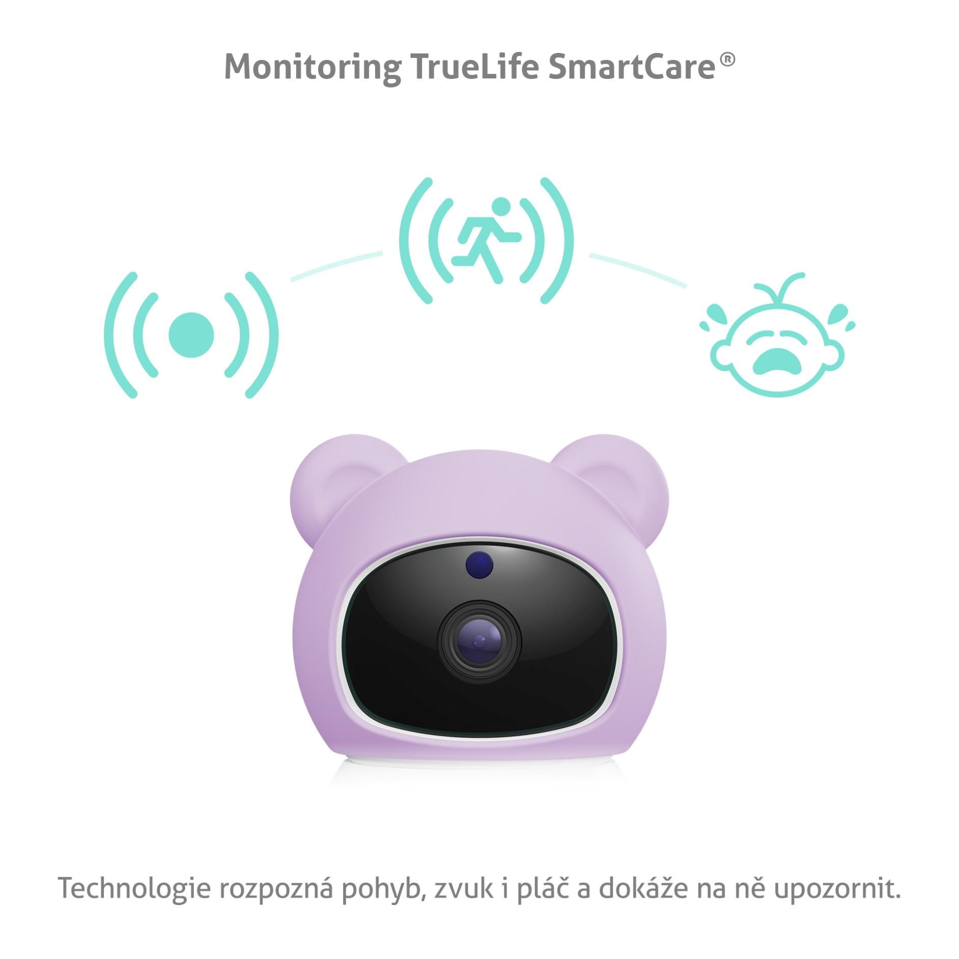 Keď nemôžete byť neustále pri postieľke, opatrovateľka za vás pozorne počúva. Funkcia TrueLife SmartCare® sleduje každý pohyb, plač aj ostatné zvuky v miestnosti a okamžite vás upozorní, keď je potrebné zasiahnuť. Súčasťou opatrovateľky sú aj senzory na teplotu a vlhkosť, ktoré pomáhajú vytvoriť prostredie, kde sa vášmu dieťatku bude dobre spať, rásť a odpočívať.