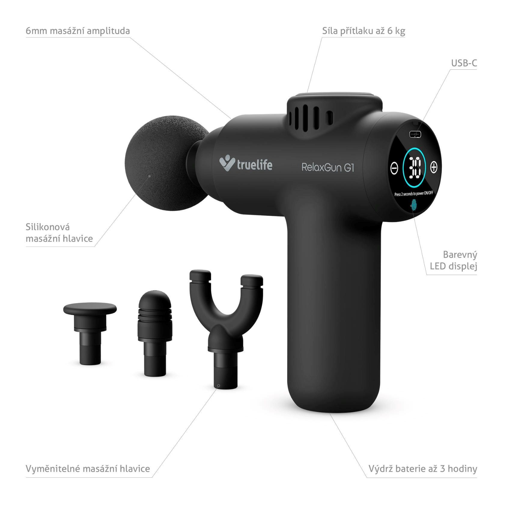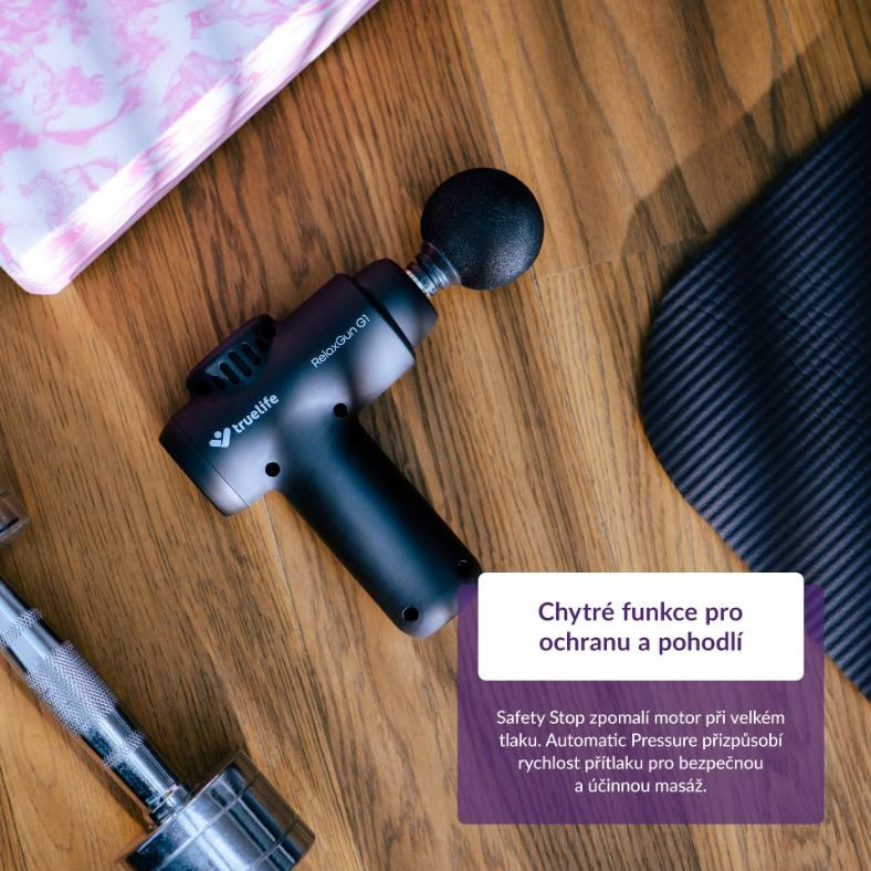 Či už športujete na vrcholovej úrovni, pracujete ako fyzioterapeut, trávite väčšinu dňa pri počítači, alebo len hľadáte efektívny spôsob, ako uľaviť unaveným svalom, masážna pištoľ TrueLife RelaxGun G1 je ideálnou voľbou pre regeneráciu aj relaxáciu. Ponúka 30 úrovní intenzity, prítlak 6 kg a frekvenciu až 3200 kmitov za minútu, takže sa ľahko prispôsobí vašim potrebám – od jemnej relaxačnej masáže až po intenzívnu hĺbkovú terapiu. Štyri vymeniteľné silikónové hlavice umožňujú cielenú starostlivosť o rôzne časti tela, zatiaľ čo inteligentné funkcie ako automatický frekvenčný prítlak a bezpečnostné zastavenie (Safety stop) zaistia maximálny komfort a bezpečie. S tichou prevádzkou, dlhou výdržou batérie až 3 hodiny a moderným USB-C nabíjaním je TrueLife RelaxGun G1 ideálnym pomocníkom doma, vo fitku, v práci aj na cestách. Doprajte si starostlivosť kedykoľvek potrebujete – pre rýchlu regeneráciu, úľavu od bolesti, prevenciu zranení aj podporu celkovej pohody.